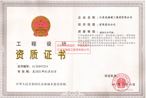 2月23日,龍海建工迎來特大喜訊——住房城鄉(xiāng)建設部發(fā)布了“關(guān)于核準2017年度第二批建設工程企業(yè)資質(zhì)資格名單的公告”,江蘇龍海建工集團成功取得了建筑工程總承包特級資質(zhì),實現(xiàn)了企業(yè)又一次具有里程碑意義的歷史性跨越——建筑工程施工總承包特級資質(zhì)、行業(yè)設計甲級資質(zhì)這兩項業(yè)內(nèi)最高資質(zhì),一次申報成功,榮幸地躋身至國家建筑行業(yè)第一方陣。成為了常州市第一家建筑工程總承包特級資質(zhì)的公司。